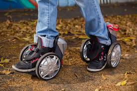 Les RocketSkates, les premiers rollers électriques intelligents au monde. Pas de télécommande, juste une sangle pour ces patins électriques connectés… Les RocketSkates se propulsent à 20 km/h.