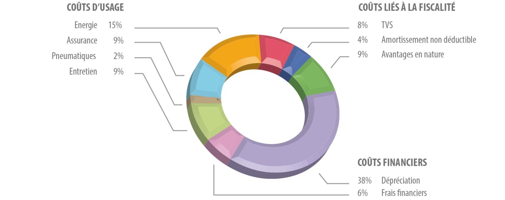 Liés à la gestion de flotte (5%) : coûts administratifs et de gestion, temps et ressources consacrées à cette fonction (depuis les commandes, immatriculations, restitutions jusqu’à la gestion des amendes…).