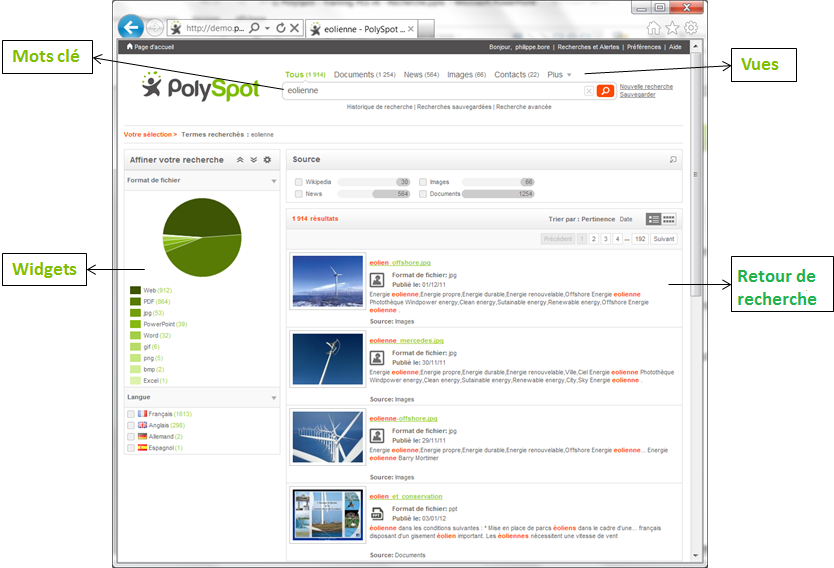 Face à une information surabondante et de sources multiples, PolySpot propose une solution technologique d’accès et de gestion rapide de cette information. Sa capacité à indexer en temps réel des réservoirs ou des flux documentaires rend cet outil particulièrement approprié aux environnements métiers où le délai de disponibilité de l’information est crucial.